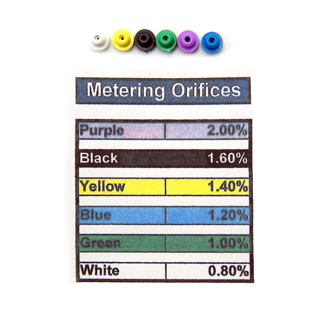 Colored metering tips for SprayWand Pretreatment System